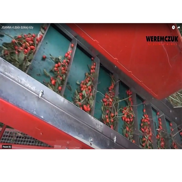 Mașina de recoltat macese “JOANNA-4” este o mașina tractată de recoltat pe jumate de rând cu